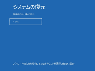 再起動後この画面まで進んだら、アカウントをクリックします。