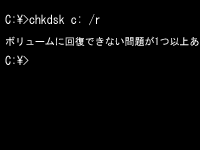 Windowsの起動トラブルで使う機会の多い回復コンソールの「 chkdsk 」コマンドですが「ボリュームに回復できない問題が1つ以上あります」というエラーメッセージがすぐ表示され、実行さえできないことも…